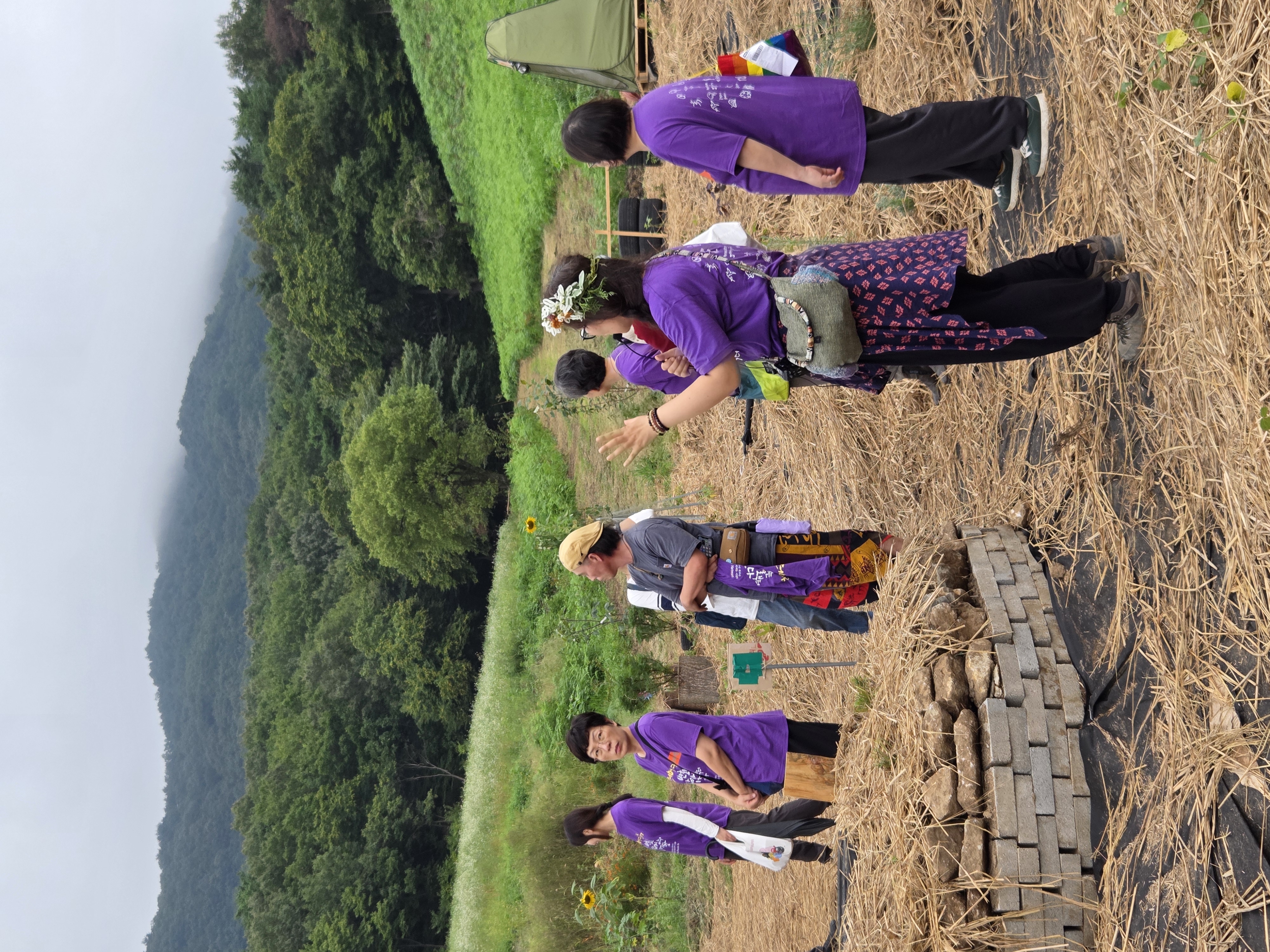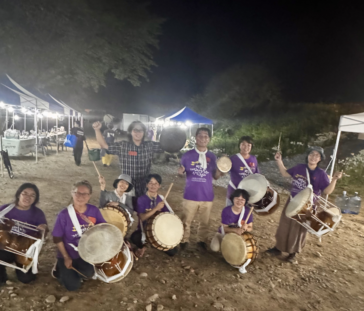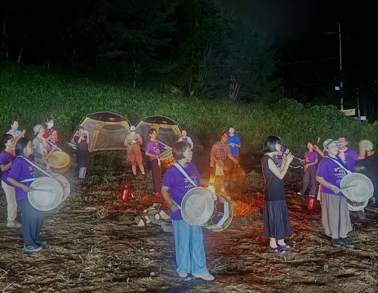 | | | 언제부터 네트워크대회 풍물패의 리더로 활동해왔나요? 작년 겨울 대만 세계퍼머컬쳐대회 때 강강수월래 이끄미로 처음 활동하게 되었습니다. 그리고 올해 퍼머컬처대회에서 두 번째로 리더가 되어 공연을 이끌었어요.   대회에서 풍물패 공연의 역할은 뭘까요? 풍물놀이는 공동체 결속과 음악과 춤을 통해 자연의 이치와 인간의 삶을 조화롭게 표현하는 의미를 담고 있어요. 풍년과 마을의 안녕을 기원하는 의식적 성격도 지니고 있죠. 모두가 참여할 수 있고 즐기며 농사와 문화가 결합을 표현하는 문화입니다.    이번 공연에서 기억에 남는 순간은 언제였나요?  지나가던 마을주민분들도 차를 멈추고 참여했다는 이야기를 전해들은 것, 가락은 모르지만 한판 공연을 하니 스트레스가 확 풀리는 것 같다며 함께 즐기는 모습이 좋았습니다. 그리고 공연오신 연주가(생황) 즉석 태평소 공연이 좋았습니다.   풍물패 공연 내용과 추후 하고픈 공연도 궁금합니다.  이번 공연에서는 문굿으로 대화를 알리는 길놀이로 시작해 강강수월래와 태평소 독주, 마무리로 이어졌습니다. 다음에 기회가 된다면 강강수월래를 다양한 마당을 함께 배우고 즐기고 싶습니다.    풍물패를 함께하고 싶어하는 분들께 남기고 싶은 메세지가 있다면?  언제든지 환영합니다~ 누구에게나 열려 있는 놀이판이에요. 함께해요~ |