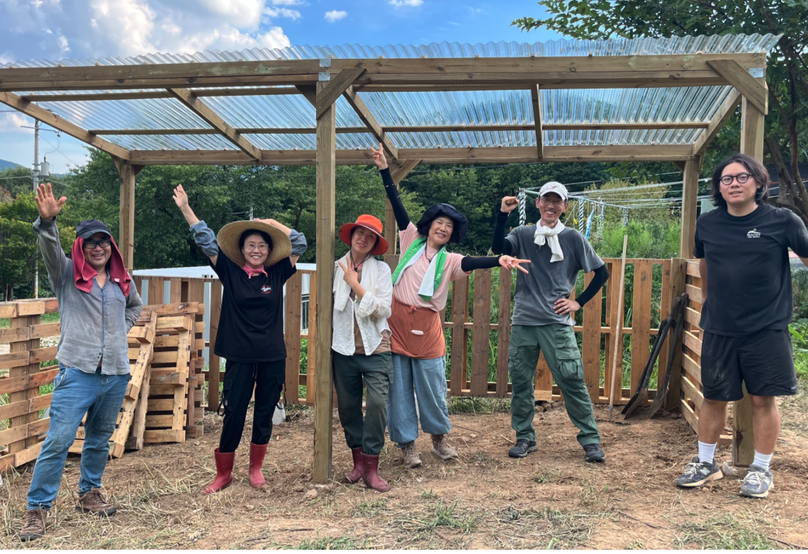밭에 만들어진 야외부엌으로 나누고 싶은 가치가 있다면? 우리 퍼머컬처리스트는 연결을 디자인하는 사람들이잖아요. 이 야외부엌이 또 하나의 연결이 시작되는 곳이었으면 합니다. 우리가 가꾼 땅에서 나온 먹거리와 사람을 연결하고, 그곳에 모인 사람과 사람을 연결하고, 무엇보다도 지역에 오래 뿌리내린 세대와 외부에서 새롭게 찾아온 세대를 이어주는 공간이 되었으면 해요. 이번 대회애서 지역 부녀회 분들이 야외부엌에서 직접 만들어 주신 국수와 전을 함께 나눠 먹을 때, 작은 공간의 변화가 새로운 문화를 만들어내는 순간이라고 느꼈어요. 혼자 울컥했답니다.   건축학교 1기의 다음 일정이 궁금합니다. ‘어떻게 살 것인가’를 고민하다 보면 자연스럽게 무엇을 먹고, 어떤 공간에서 살아갈 것인가로 이어지게 되죠. 앞으로의 건축학교는 단순히 목공이나 전기 같은 기술을 배우는 곳을 넘어, 내가 일구는 밭과 내가 살아갈 집을 직접 고민하고 만들어보는 학교로 발전하길 꿈꾸고 있습니다. 그 작은 시작으로 올여름, 가뭄으로 힘든 시간을 보낸 강릉의 밭들을 위해 소형 빗물저금통을 함께 만들어 볼 계획이에요. |