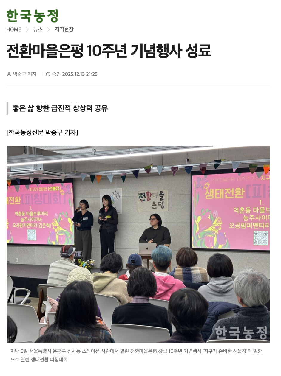 [한국농정신문] 전환마을은평 10주년 기념행사 성료