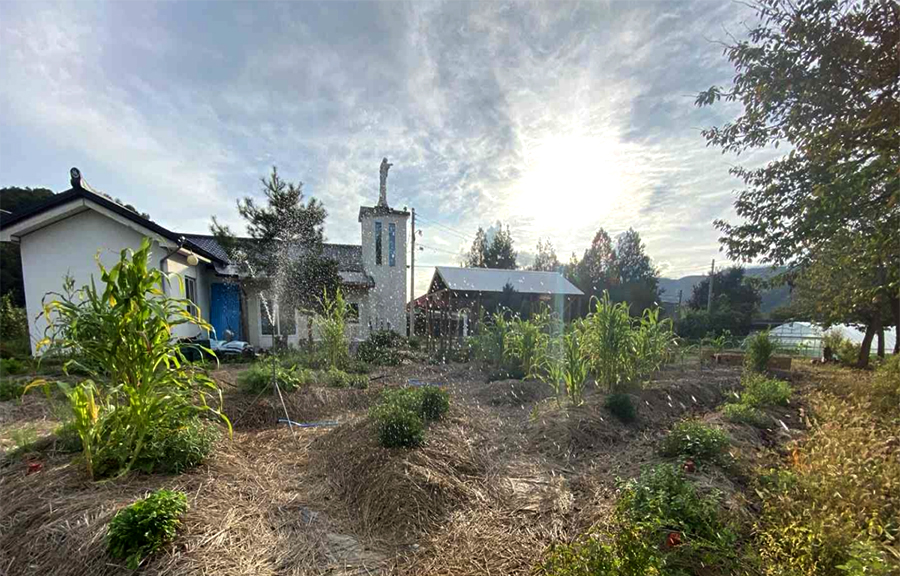 교통이 불편하던 시절 읍내 성당 사제의 방문으로 미사가 거행되던 공소가, 터널이 생기고 자가용들이 많아지면서 교우들이 직접 읍내 성당으로 나가게 되고 지난 20여년간 유휴 공간이 되었습니다. 초등학교와 중학교, 어린이 집이 이웃한 이 유휴공간에서 공동의 집 지구에 대한 생태적 회심을 일으키는 체험의 장으로서 공동체 기후정원 조성 활동을 지속적으로 하고 있습니다.