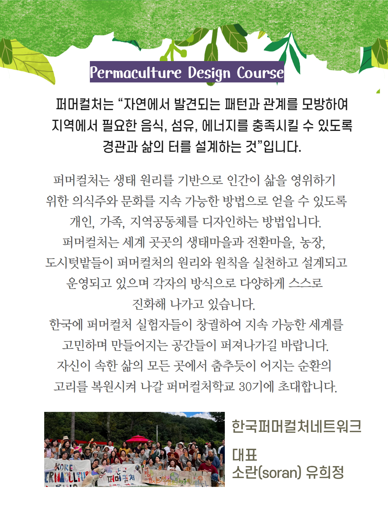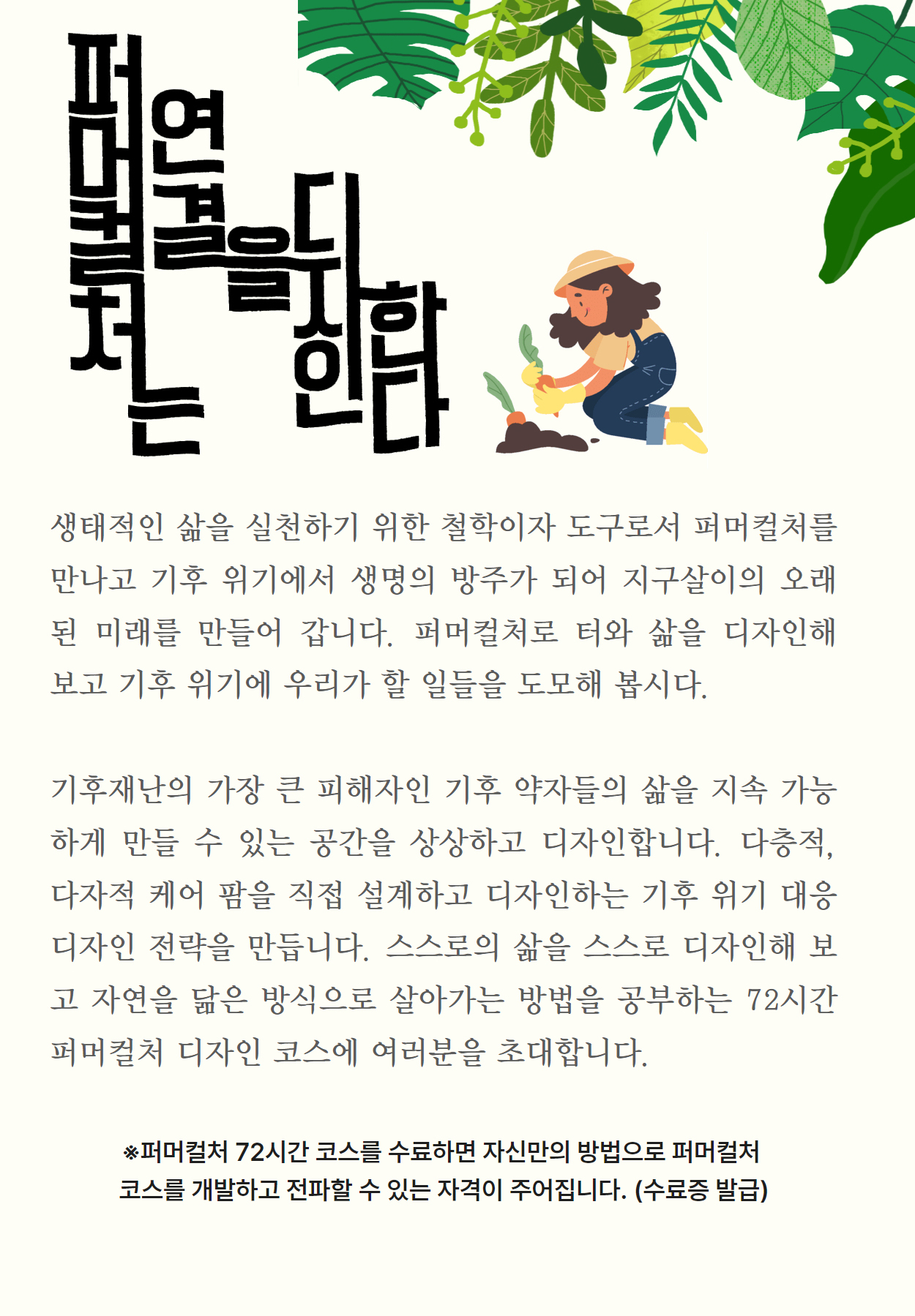 72시간의 퍼머컬처 디자인 코스에 여러분을 초대합니다.