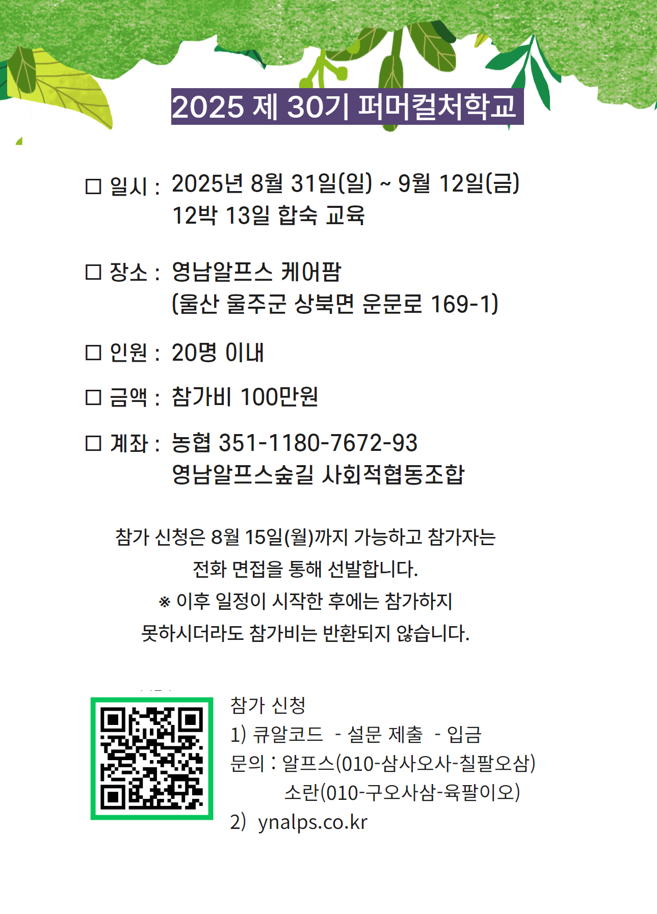 <30기 퍼머컬처학교 참가신청 방법>