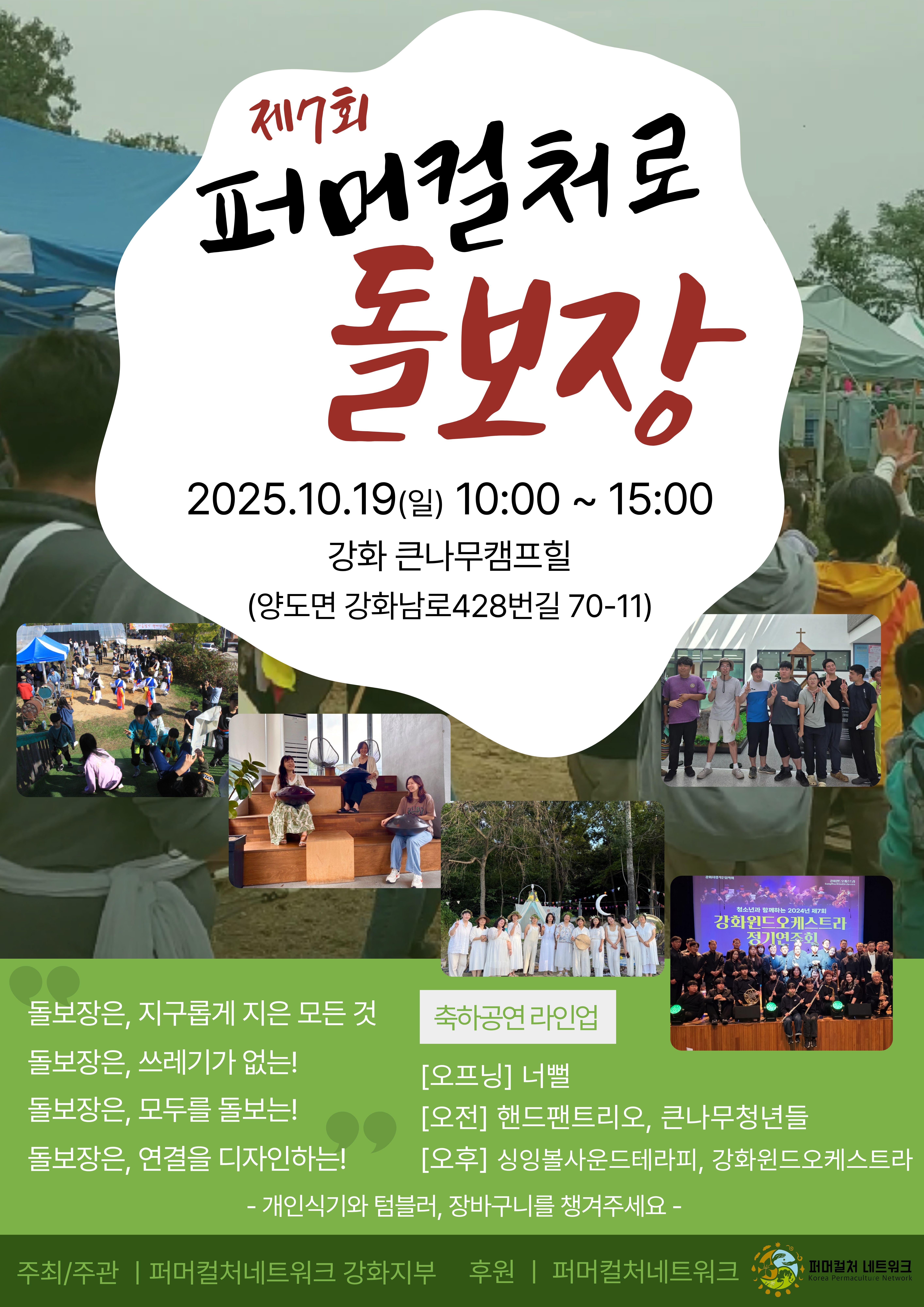 제7회 퍼머컬처로 돌보장이 강화에서 열립니다!