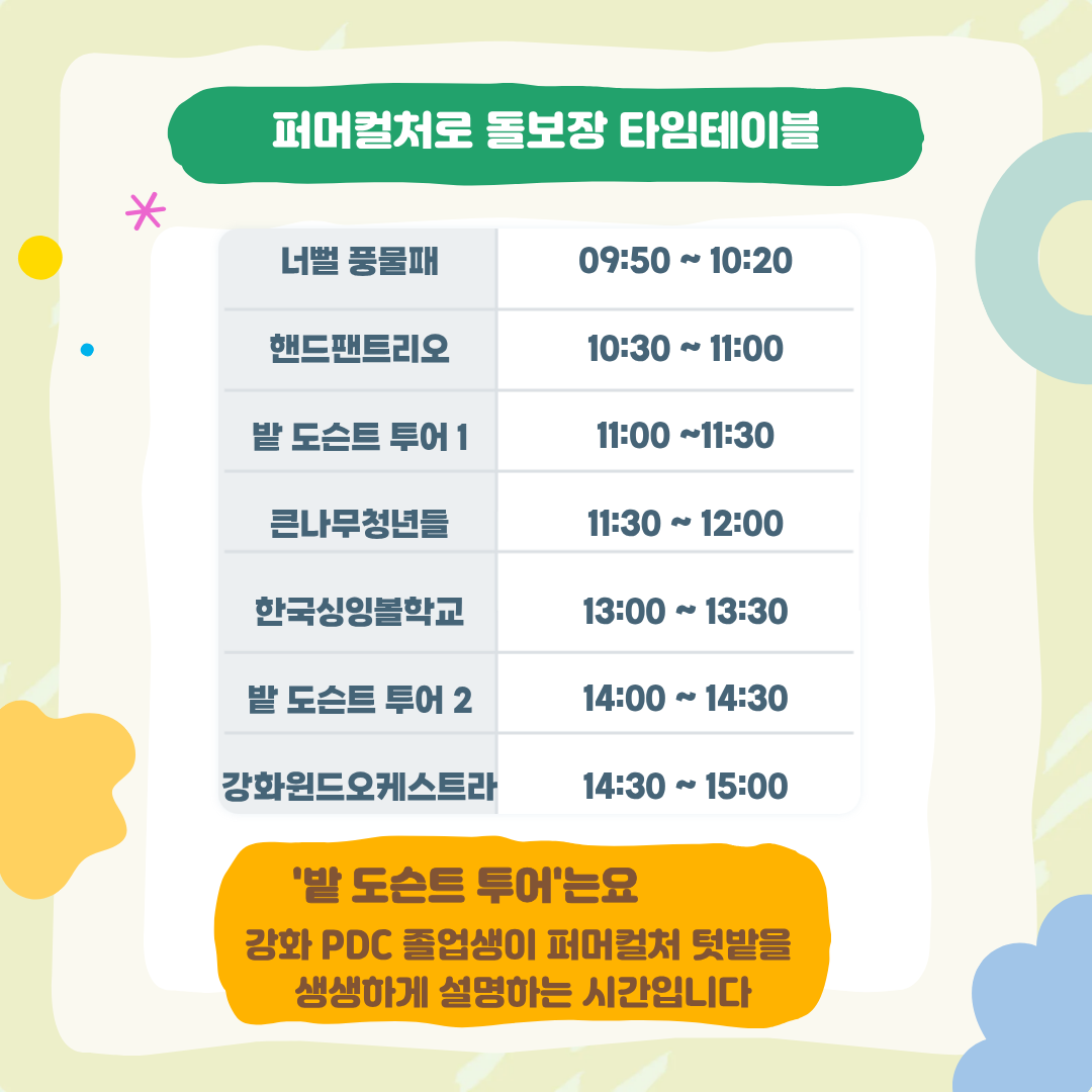큰나무캠프힐 밭 투어와 공연까지 알차게 준비되어 있어요.